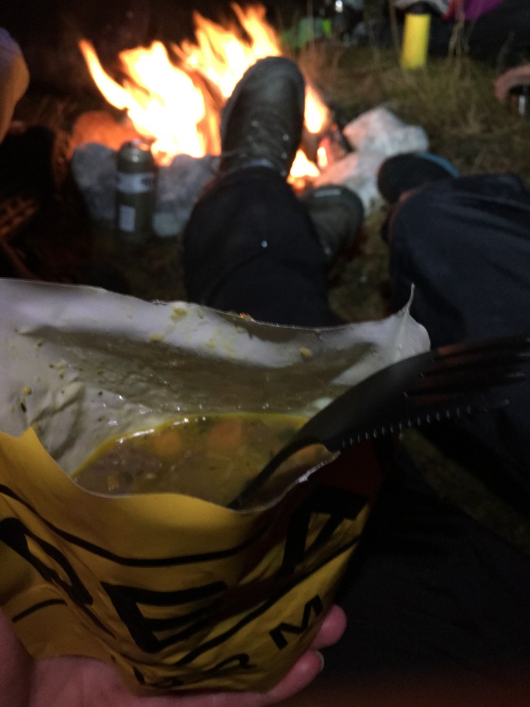 The tour guides lit a campfire. And then we all sat around the fire, telling stories and getting to know each other while heating and eating our food.