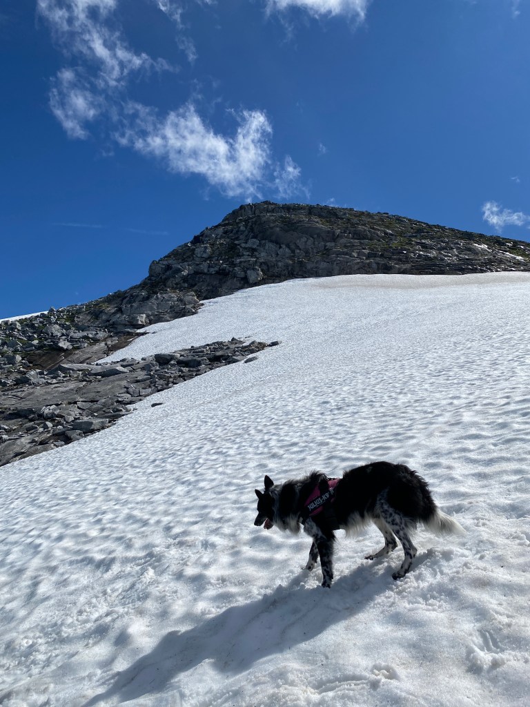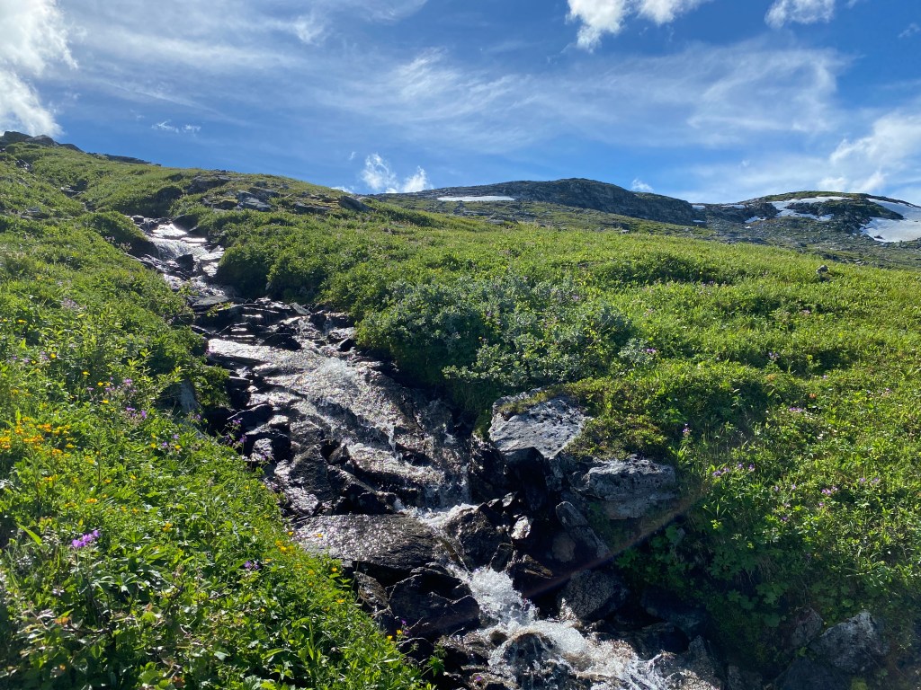 As one of the pictures above shows, there is still some snow left in the mountains, even though we are in the middle of the summer. We were actually thinking about going on this hike in May, but it was too much snow and therefore not safe to go there for us (we are not the most experienced hikers). Now, we looked at the little snow that was left in a positive way- a way of cooling us down. Our own freezer.